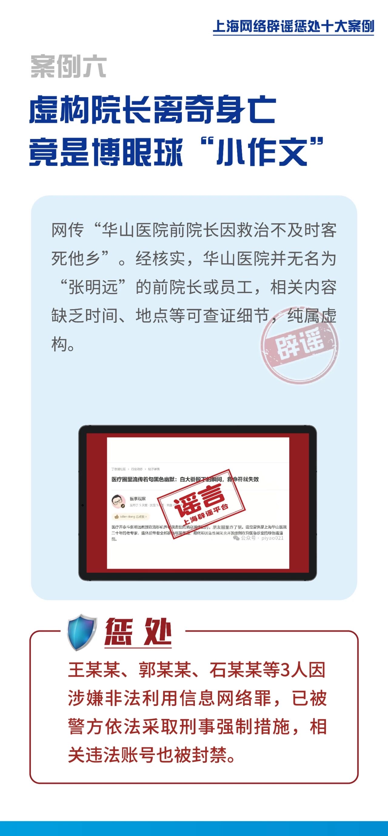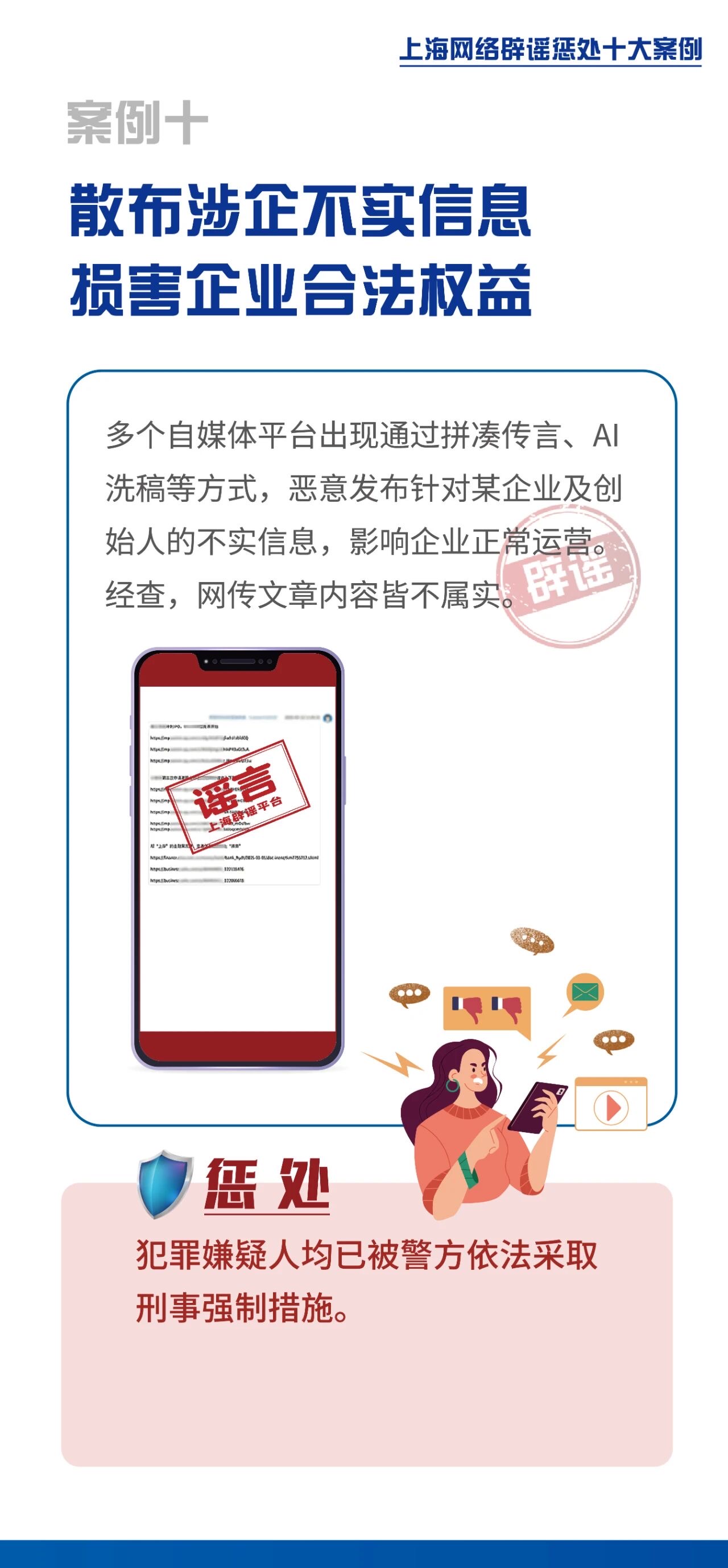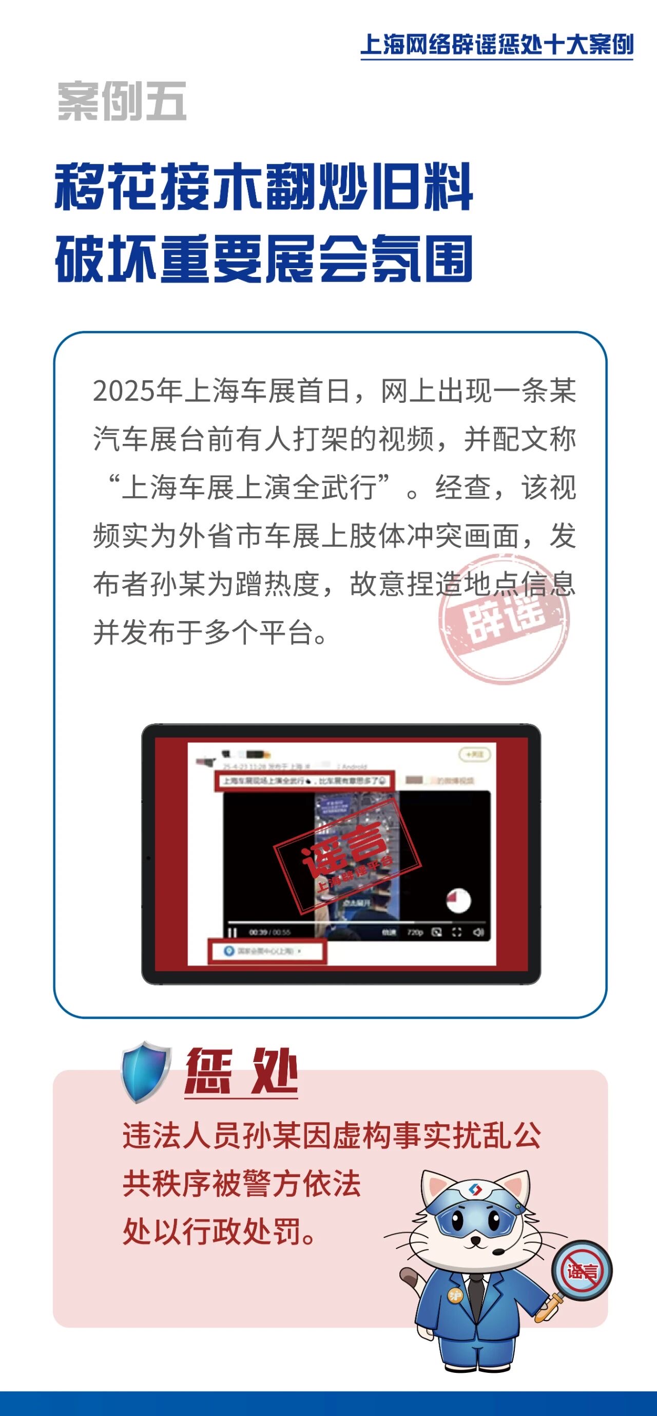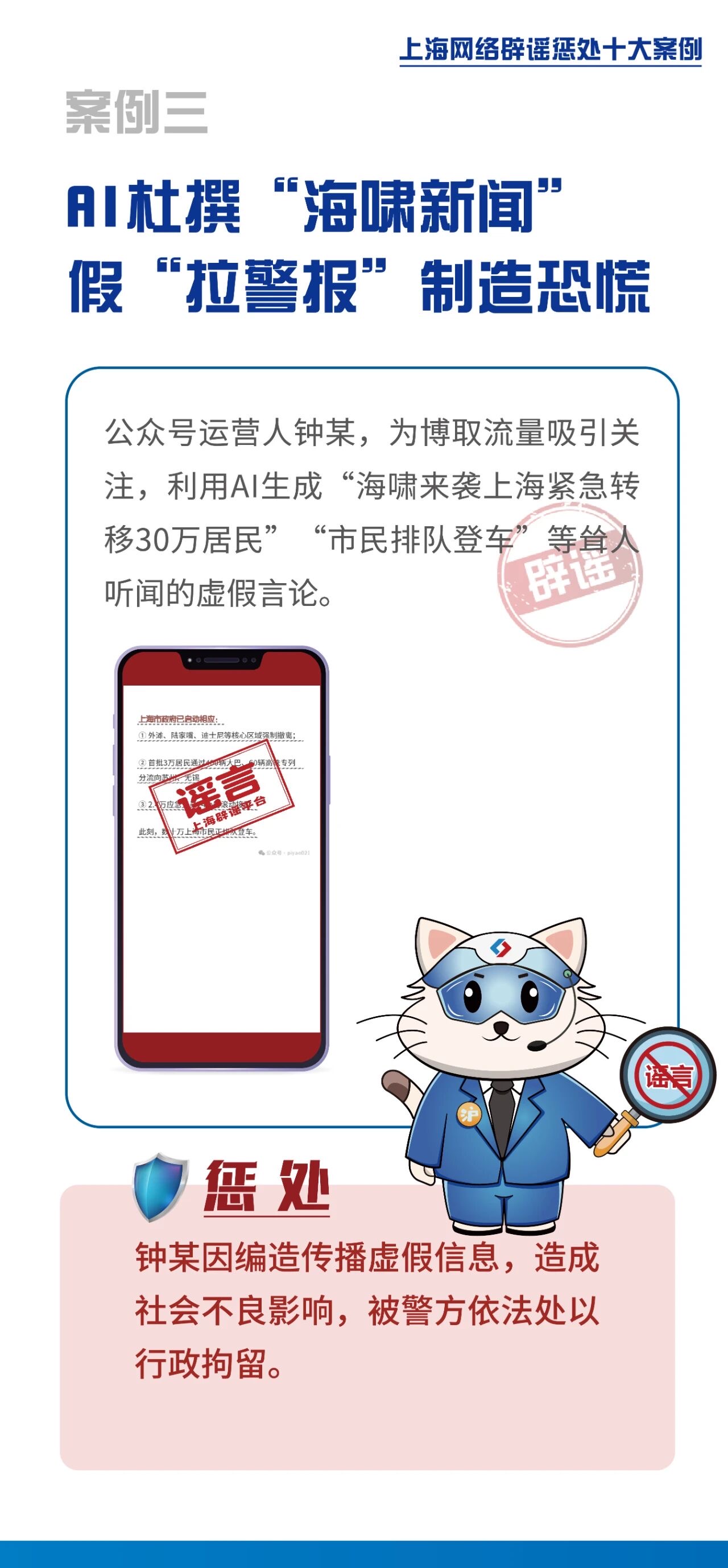 2025年上海网络辟谣宣传周活动近日启动,并发布《上海网络辟谣惩处十大案例》。活动由上海网信办指导,上海市互联网违法和不良信息举报中心主办。